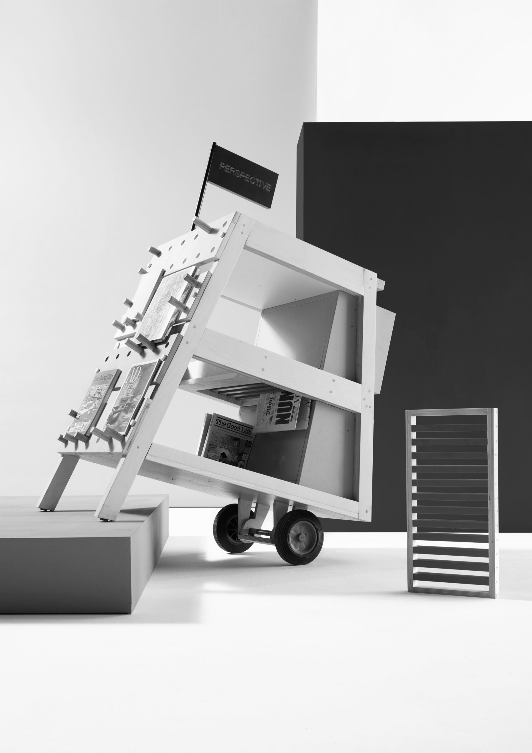 Caractéristiques Chariot à 2 roues pour transport de livres, structure en bois